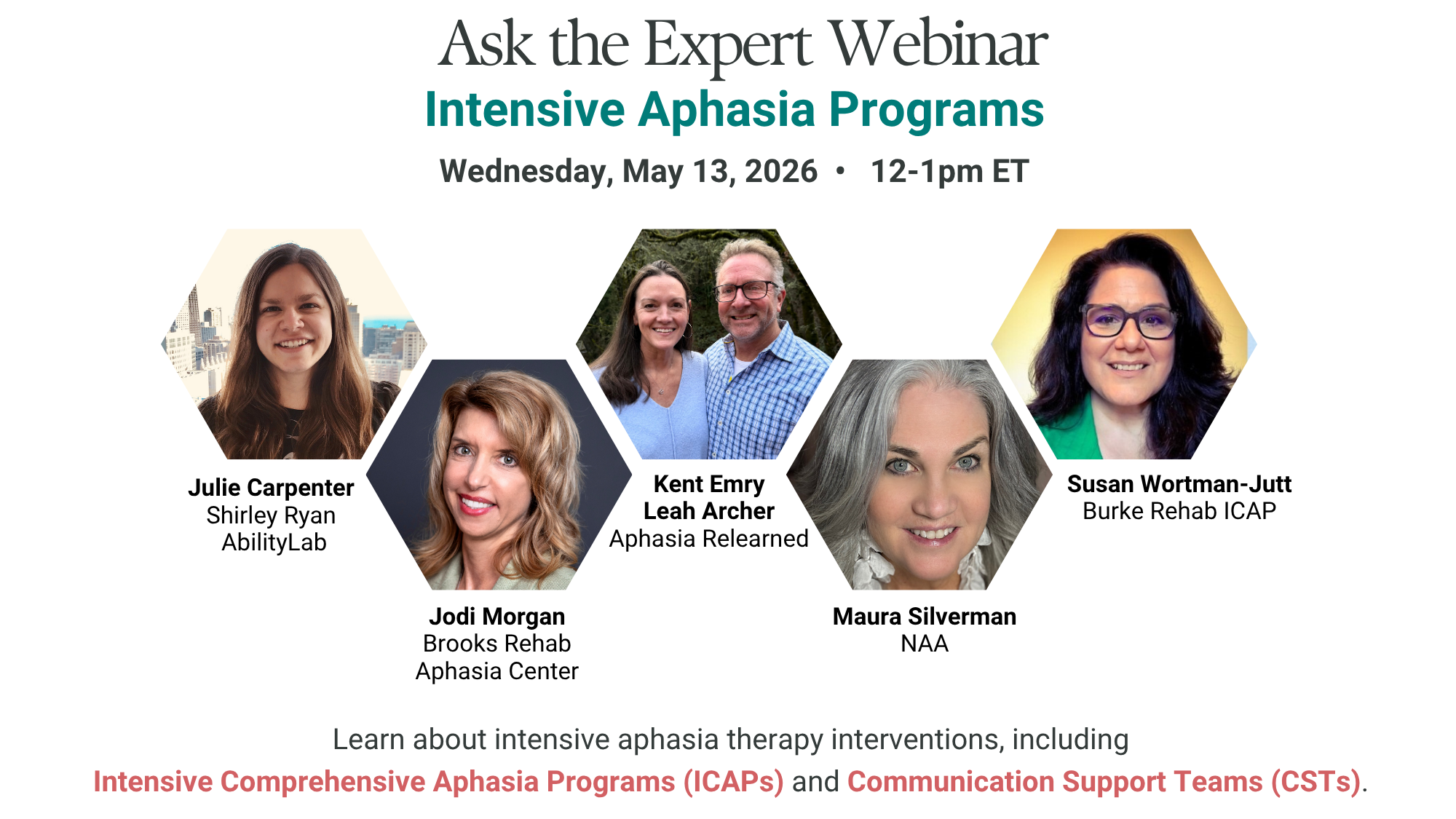 Description: Learn about intensive aphasia therapy interventions, including Intensive Comprehensive Aphasia Programs (ICAPs) and Communication Support Teams. Our panel of experts will discuss questions such as:
