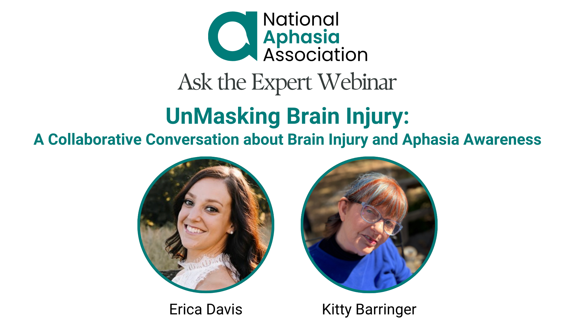 Description: Our March “Ask the Expert” webinar will feature a collaborative conversation about brain injury awareness, advocacy, and shared priorities between the brain injury and aphasia communities. This month’s experts, Erica and Kitty, join us from the Brain Injury Association to share about the UnMasking Brain Injury Project. This project is a powerful national campaign that uses creative expression and storytelling to raise awareness about the often invisible effects of brain injury.